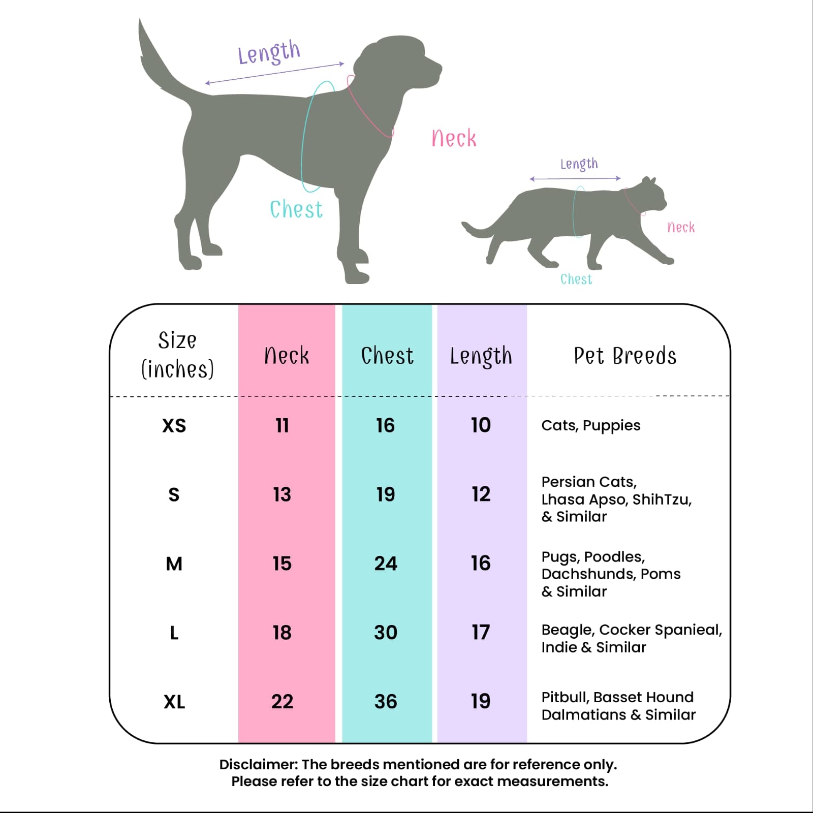 Please Note : Every pet is different, please refer to the size guide to avoid any misfit. Also, some pets like clothes and some may not. Please be sensitive to their individual requirements. Remember to ease your pet slowly into getting familiar with wearing clothes.