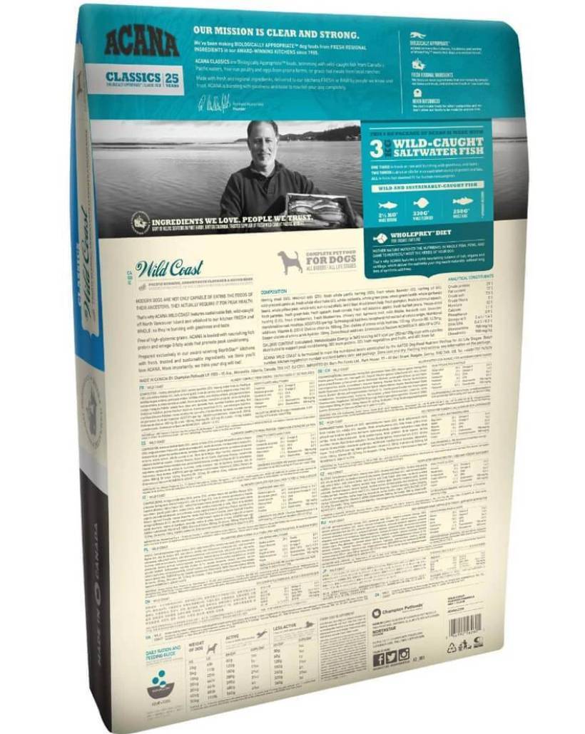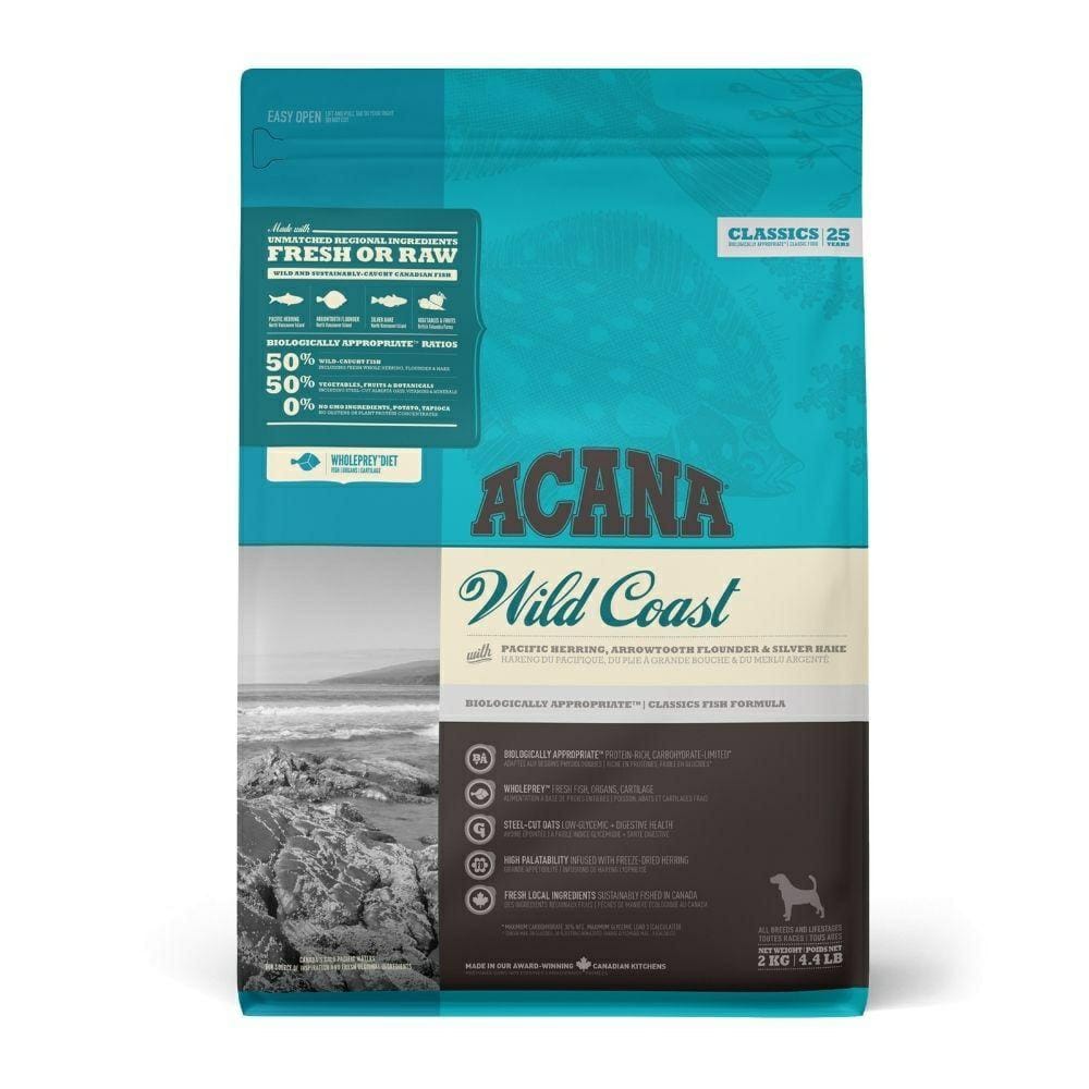 • Acana Wild Coast follows whole prey ratios and reflects the evolutionary food habits of dogs.