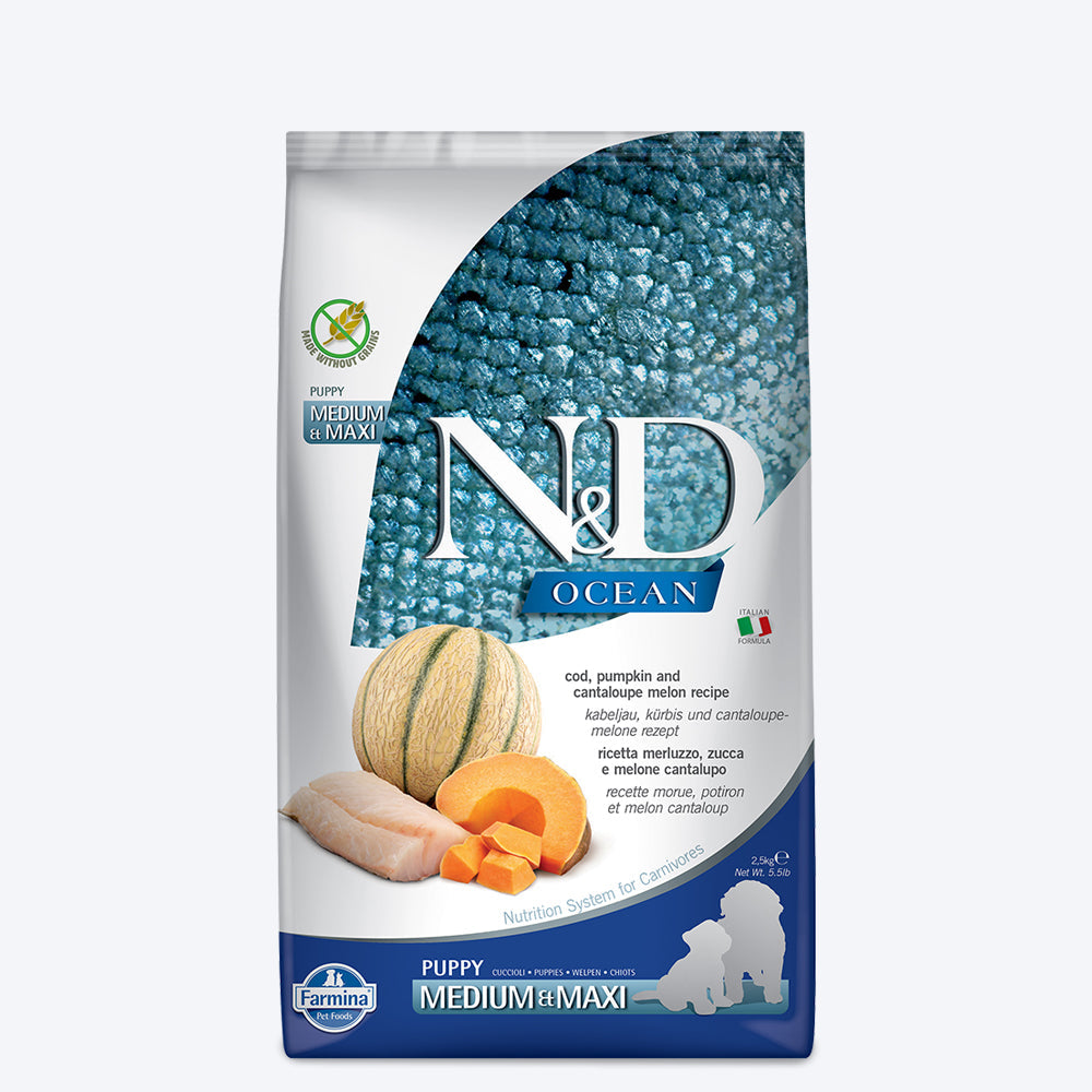 Farmina N&D Ocean Pumpkin, Cod & Cantaloupe Melon Puppy Medium & Maxi 2.5kg Dry Dog Food