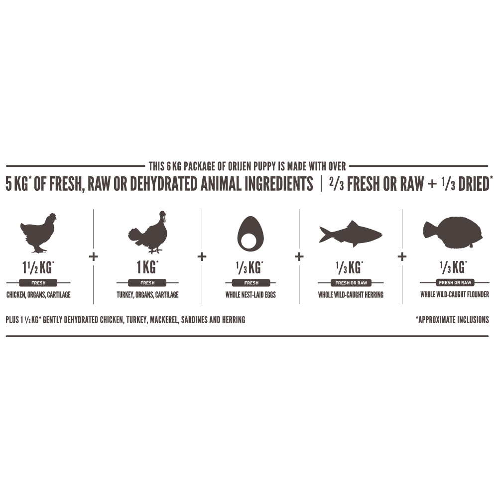 Puppies need a special diet that has plenty of pf protein and fat to help them grow. This recipe is made with locally sourced, quality ingredients that give your puppy all the protein, vitamins and minerals that your bundle of joy needs. Orijen Puppy dry dog food has been made in line with Orijen