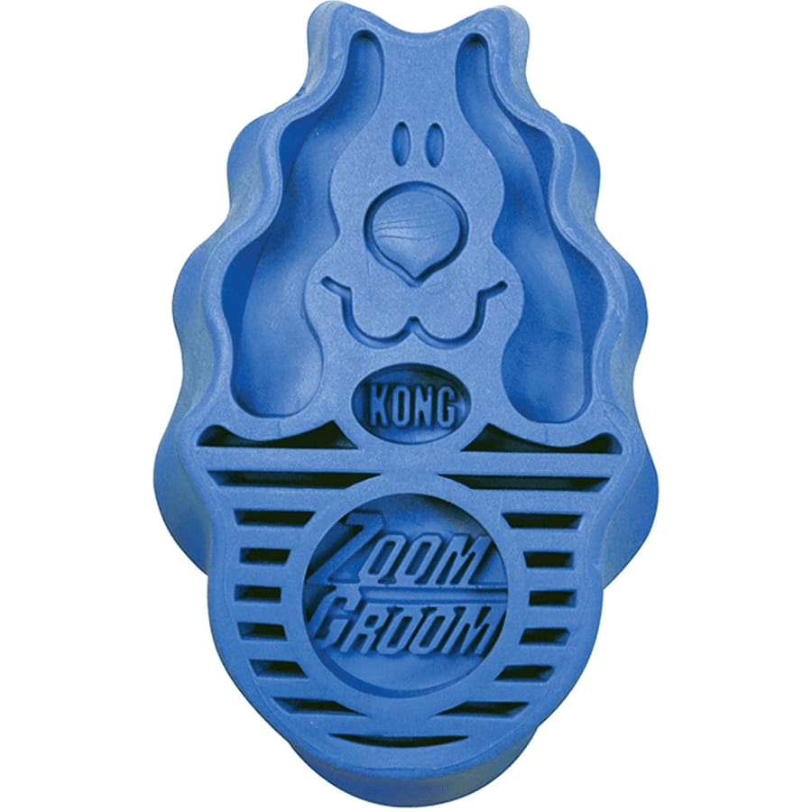 The KONG ZoomGroom™ helps make it easier to get your dogs clean. While shampooing use the ZoomGroom™ to clean your dogs’ coat. The 3/4 inch rubber fingers reach through the coat to massage the skin, stimulating capillaries and natural oil production leading to a healthy coat for your dog.