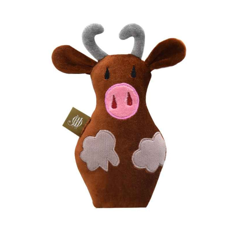 Delight your rowdy furry baby with this artistic fauna. Our brown-bull plush toy is a perfect homecoming present to your little monster. With curved horns and sharp ears, it's easy to be held, hung and dragged around. We aestheticize our toys with detailed use of dog-friendly colors, interactive doodly shapes, and super-soft feel.