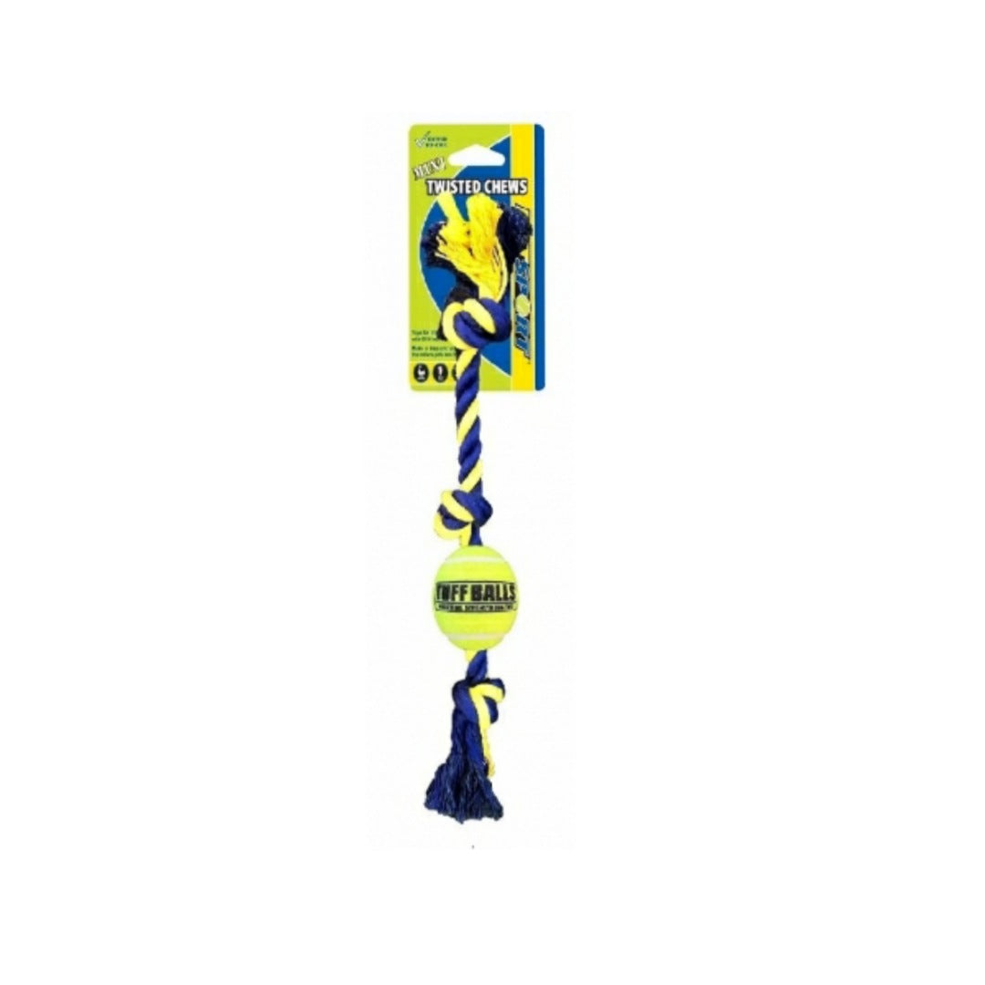 A super strong combination of a premium cotton rope and a 2.5" Tuff ball. The balls have super thick natural rubber walls for a better bounce and extra durability. Will keep your aggressive chewer entertained and engaged.