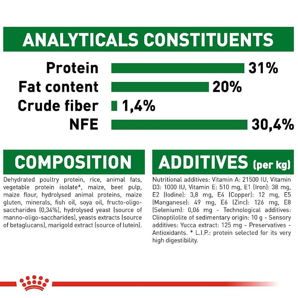 • Crude fibres: 1.4%. *L.I.P.: protein selected for its very high assimilation.
